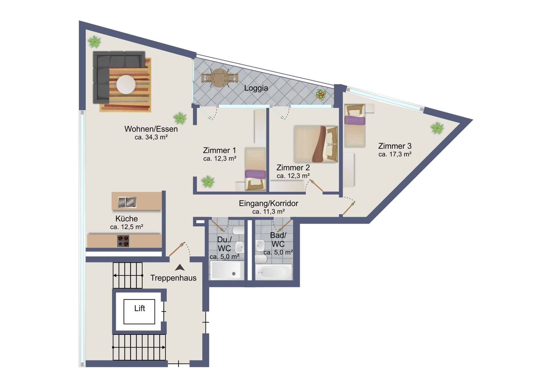 Diese Wohnung vereint urbanes Wohnen mit Licht, Weite und höchster Wohnqualität. Ein Zuhause, welches sowohl heute als auch langfristig überzeugt. Die grosszügige gedeckten Loggia lädt bei jeder Witterung zum Verweilen ein.