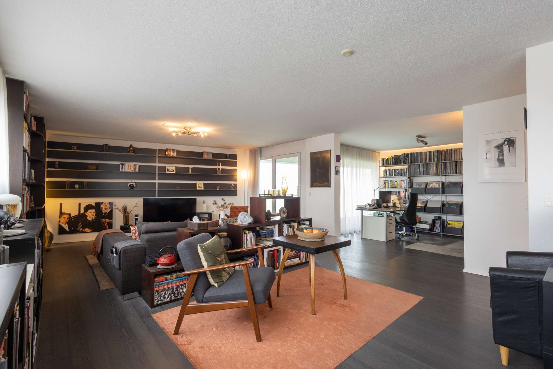 Ursprünglich als 4.5-Zimmer-Wohnung konzipiert, bietet sie eine beeindruckende Wohnfläche von rund 116 m². Der heutige Eigentümer und zugleich Erstkäufer, hat mit gezielten, minimalen Eingriffen einen deutlichen Mehrwert geschaffen und die Wohnung in eine sehr grosszügige 3.5-Zimmer-Wohnung umgestaltet. Mit einfachsten baulichen Massnahmen, lässt sich der ursprünglich angedachte Grundriss jederzeit wiederherstellen, sodass bei Bedarf erneut ein drittes, abschliessbares Zimmer entsteht.