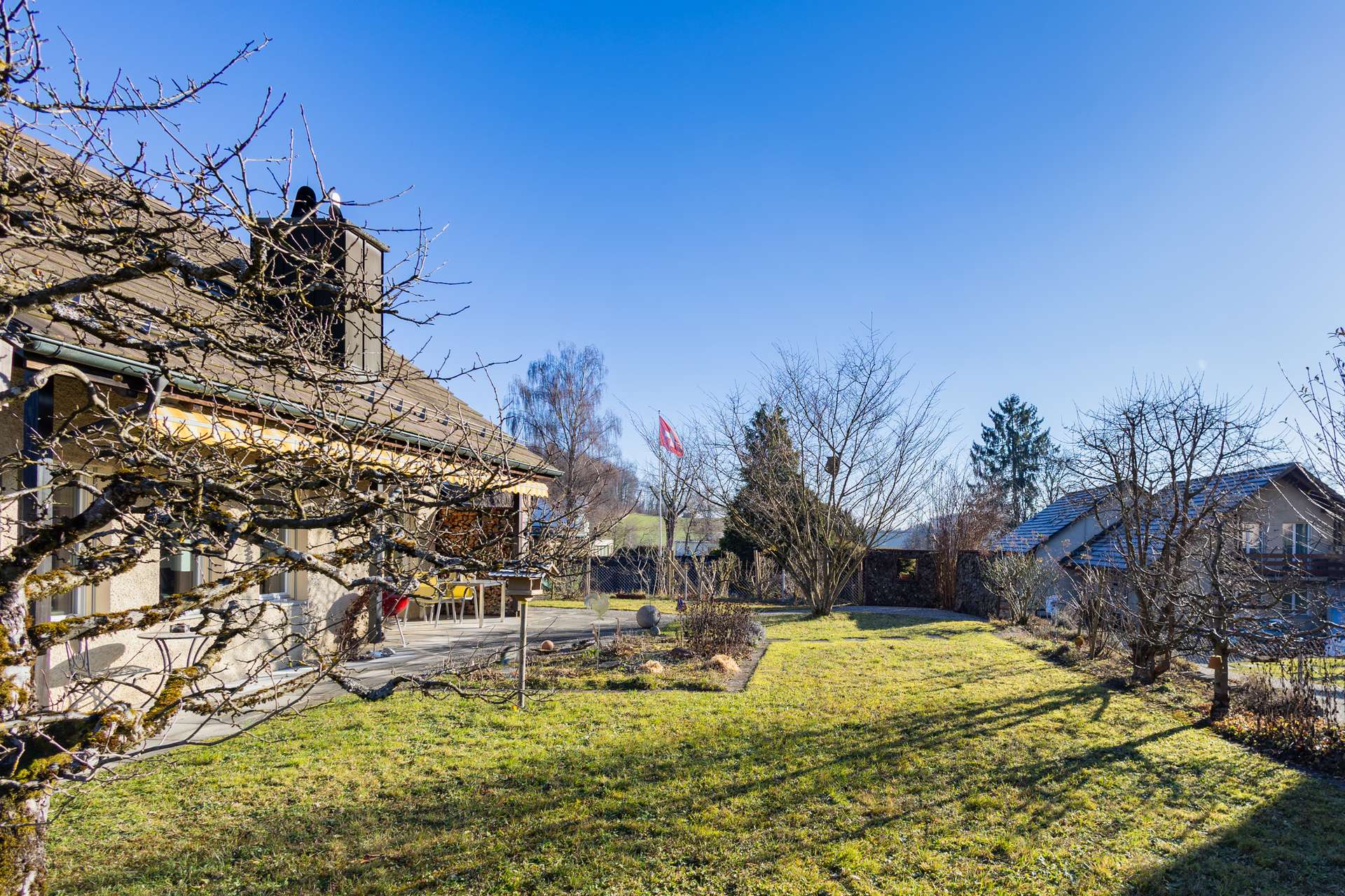 Dieses Einfamilienhaus bietet nicht nur Raum zum Wohnen, sondern einen Garten zum Leben. Ein gewachsener, naturnaher Rückzugsort mit Sitzplätzen im Osten, Süden und Westen bietet viel Platz für Spiel, Erholung und Begegnung.