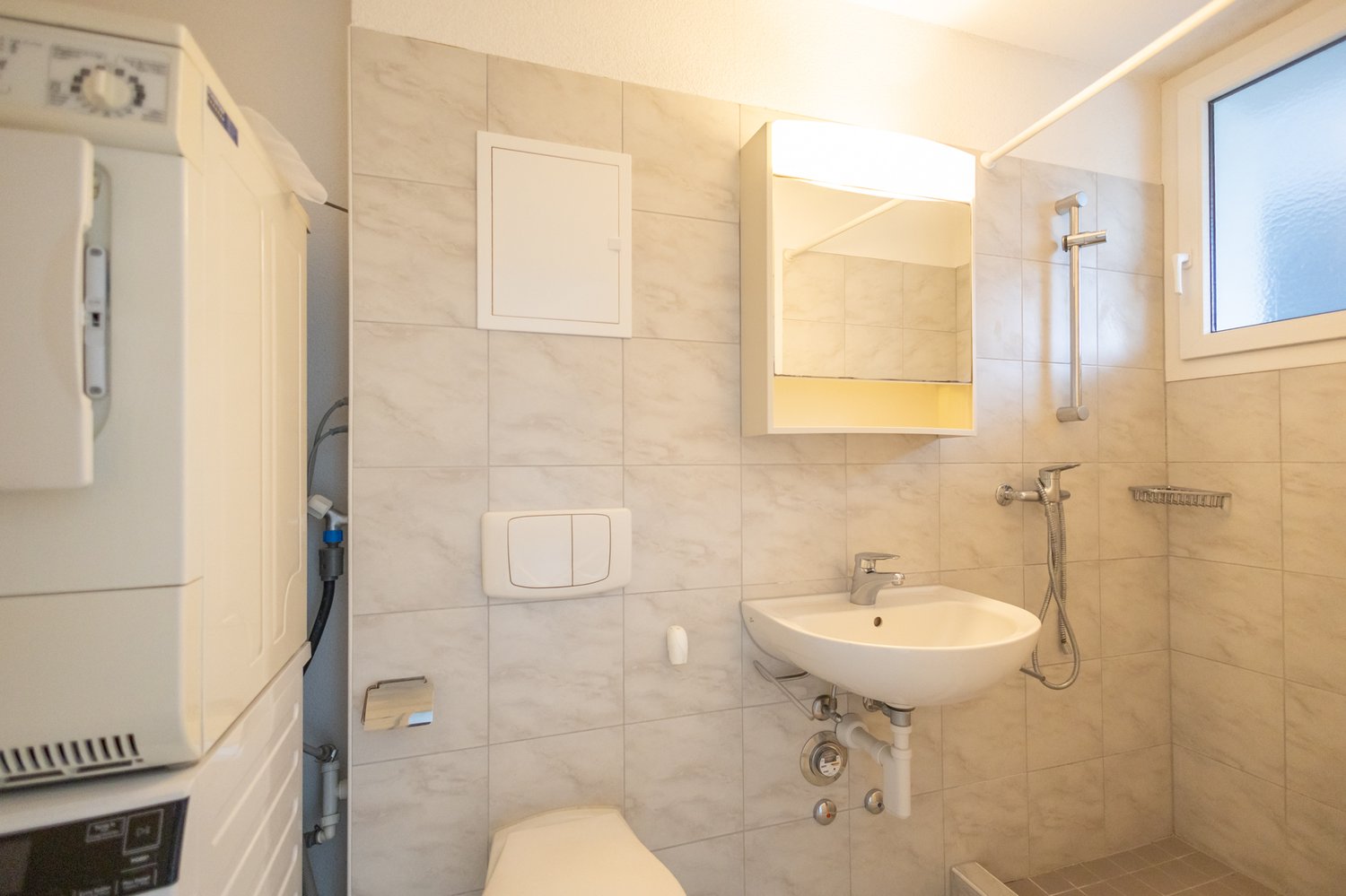 Bad/WC sowie separate Dusche/WC, ausgestattet mit eigenem Waschturm