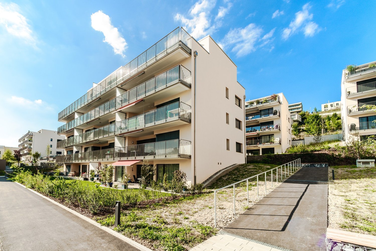 Die Wohnüberbauung Sinfonie liegt an sonniger Hanglage, herrlich eingebettet in die Landschaft von Winterthur-Wülflingen. Nutzen Sie die Vorteile des stadtnahen Wohnens und gleichzeitig die Möglichkeit in der nicht weit entfernten Natur Erholung vom Alltagsstress zu finden.