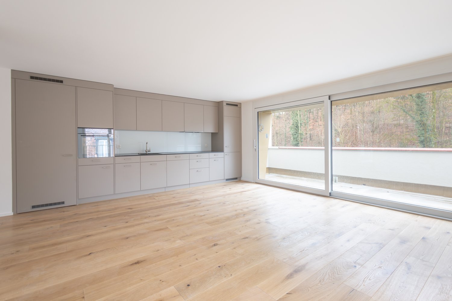 Moderne Küche in hellem Greige / Sandbeige