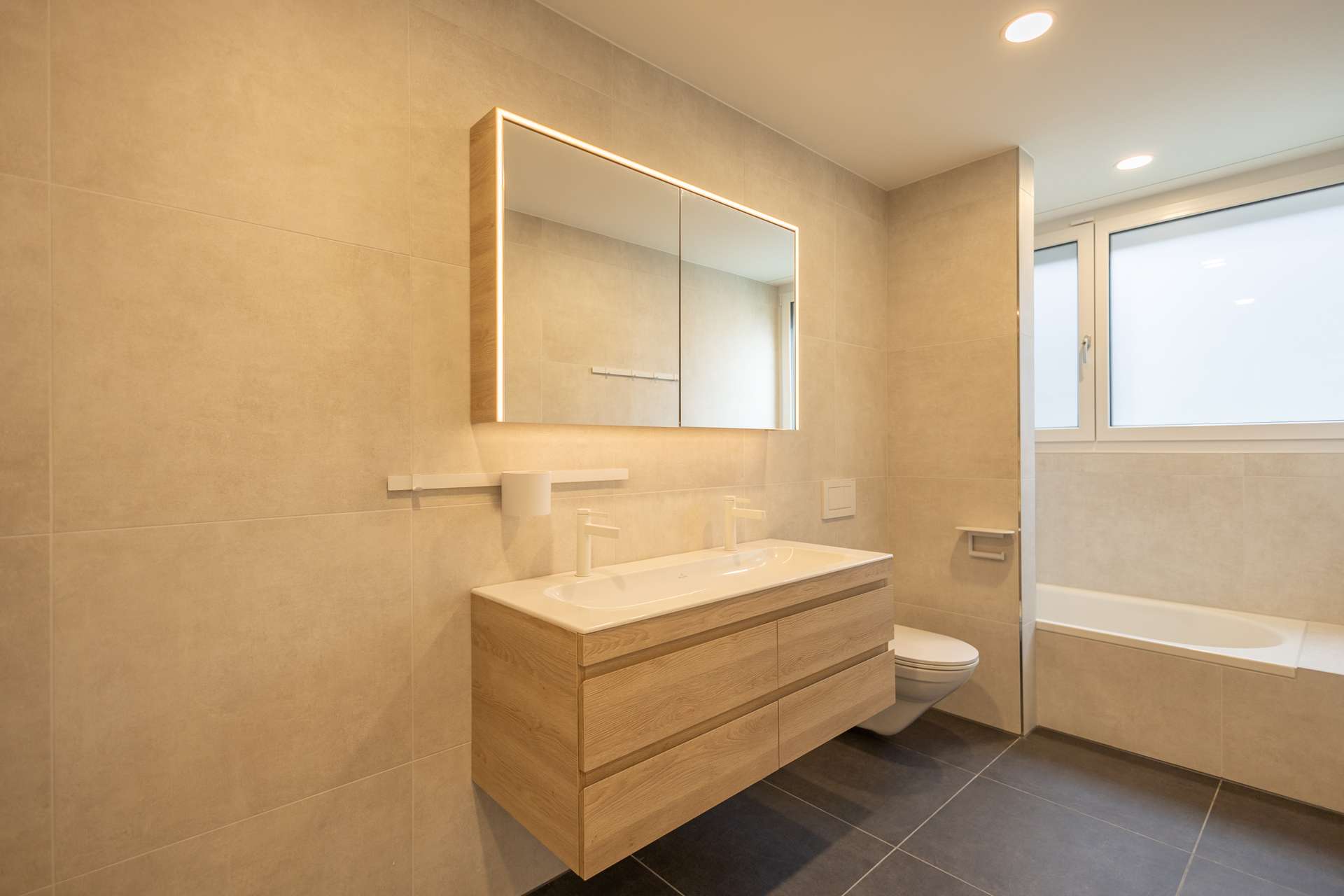 – 3 Badezimmer: Stilvolle Ausstattung, Tageslicht, Walk-in-Dusche