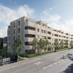 Die Wohnung befindet sich in einer gepflegten Überbauung mit nur sechs Parteien in einem ruhigen, familienfreundlichen Umfeld.