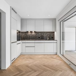 – Offene, moderne Küche mit Arbeitsinsel und Miele-Geräten