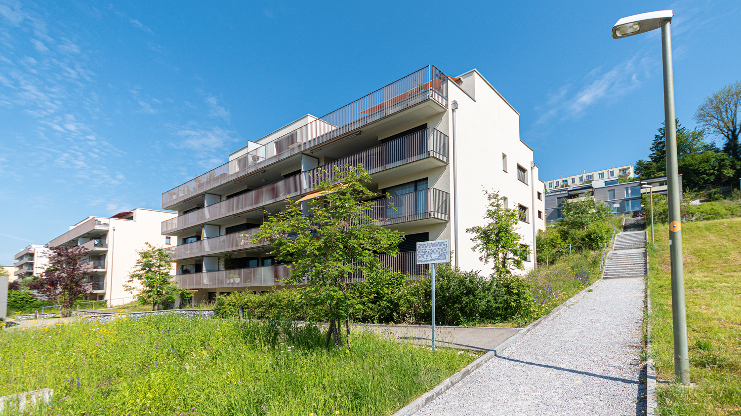 Beim Neubauprojekt Sinfonie in Winterthur übernahmen wir die Vermarktung und Erstvermietung von insgesamt 22 Mietwohnungen im Eigentumsstandard. Die Wohnungen verteilen sich auf zwei Mehrfamilienhäuser mit 10 beziehungsweise 12 Einheiten. Das Vermietungsmandat startete im 2. Quartal 2014, wobei sämtliche Wohnungen innerhalb der vorgesehenen Vermietungsfrist erfolgreich vermietet werden konnten.