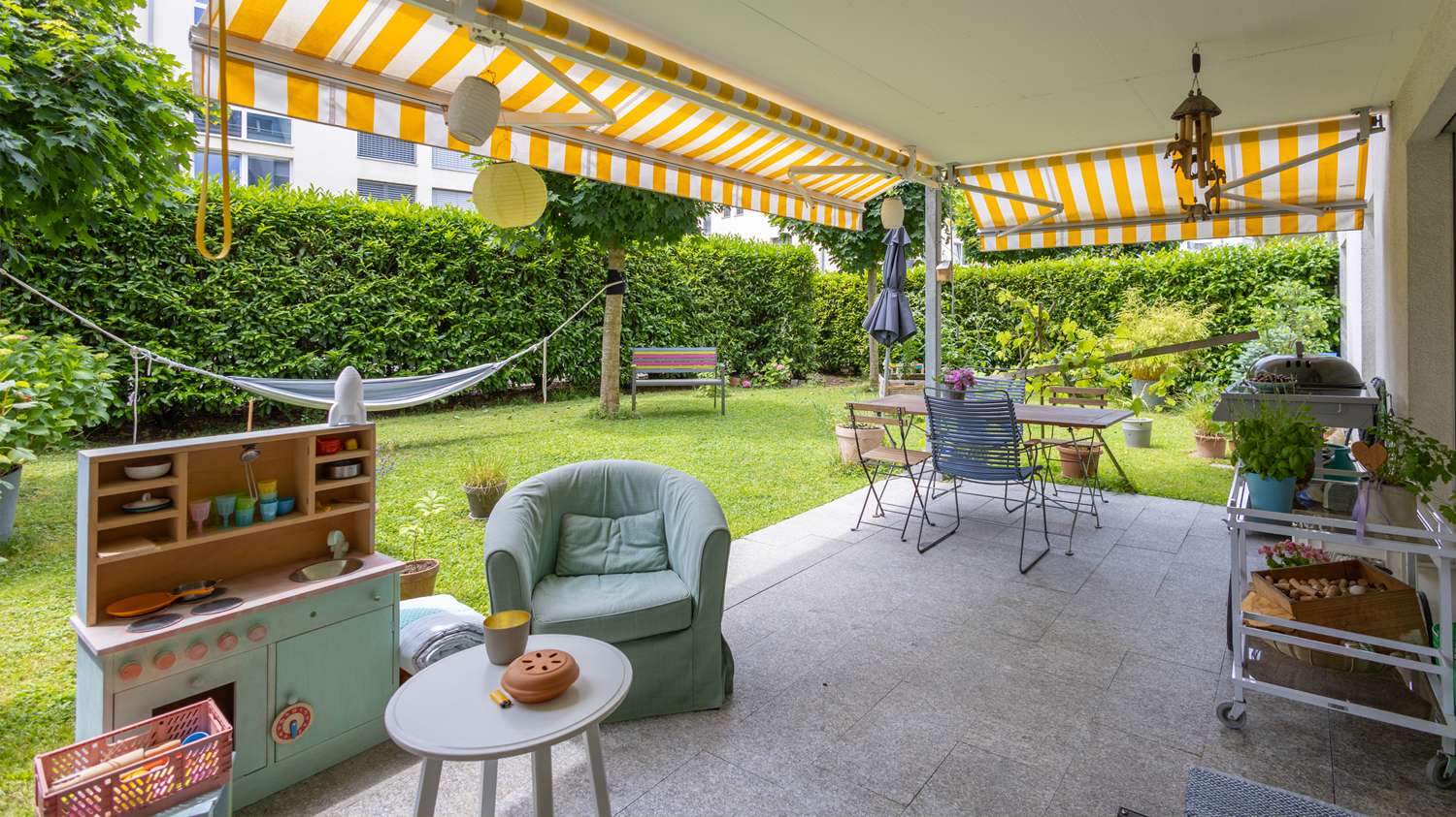 „Living mit Green Touch“, moderne Gartenwohnung mit ca. 140 m² Privatgarten in Dübendorf. 204 durften wir diese stilvolle 3.5 Zimmer Gartenwohnung im beliebten Dübendorf einem neuen Eigentümer übergeben. Ein durchdachter Grundriss, viel Tageslicht und ein ca. 140 m² grosser Privatgarten schaffen ein Wohngefühl, das moderne Ansprüche mit naturnahem Lifestyle verbindet. Die ruhige Lage, die hervorragende Anbindung an Zürich machen dieses Zuhause ideal für Singles, Paare oder kleine Familien.