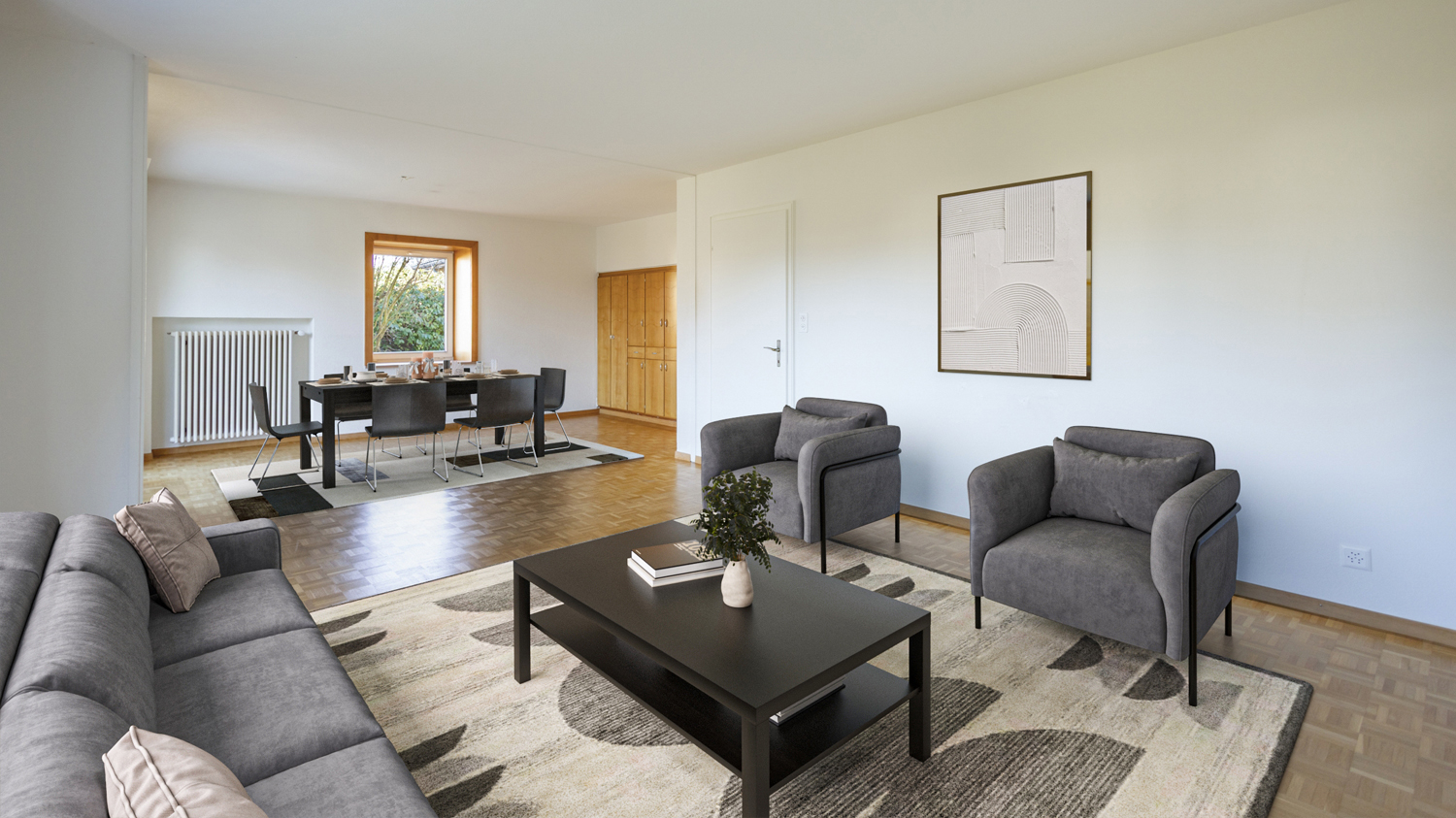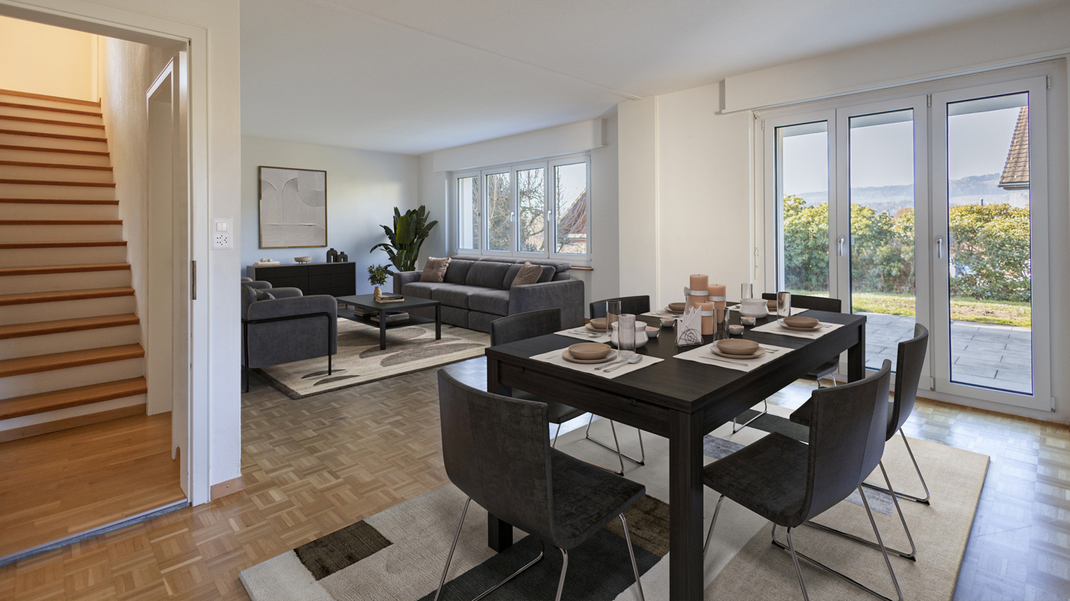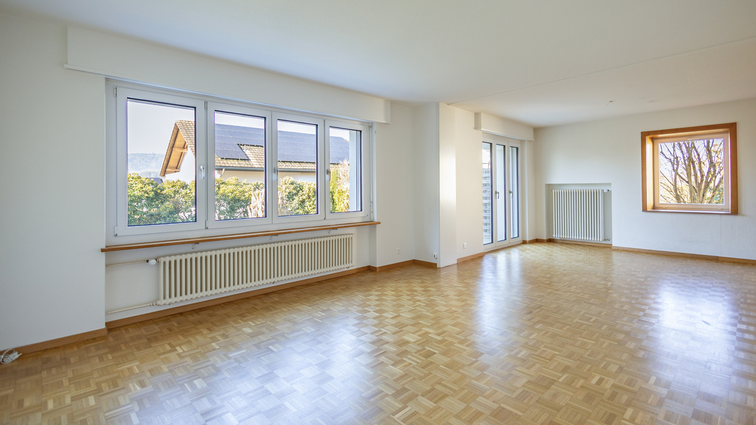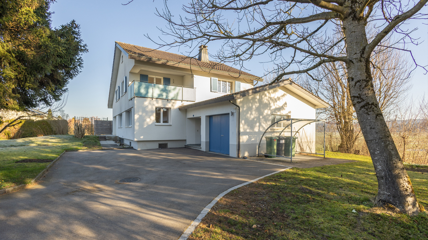 8.5 Zimmer-Einfamilienhaus mit Garten und vielseitigem Raumangebot. Diese gepflegte Liegenschaft überzeugte durch ihre ruhige Lage, flexible Nutzungsmöglichkeiten und einen idyllischen Garten mit Südwestausrichtung. Neben Garage und Aussenparkplätzen bot das Haus einen separaten Eingangsbereich mit zwei flexibel nutzbaren Räumen, einen grosszügigen Wohn- und Essbereich mit Gartenzugang sowie insgesamt fünf Schlafzimmer. Ein renoviertes Familienbad, Hobbyraum, Naturkeller und weitere Nebenräume im Untergeschoss ergänzten das Raumangebot.