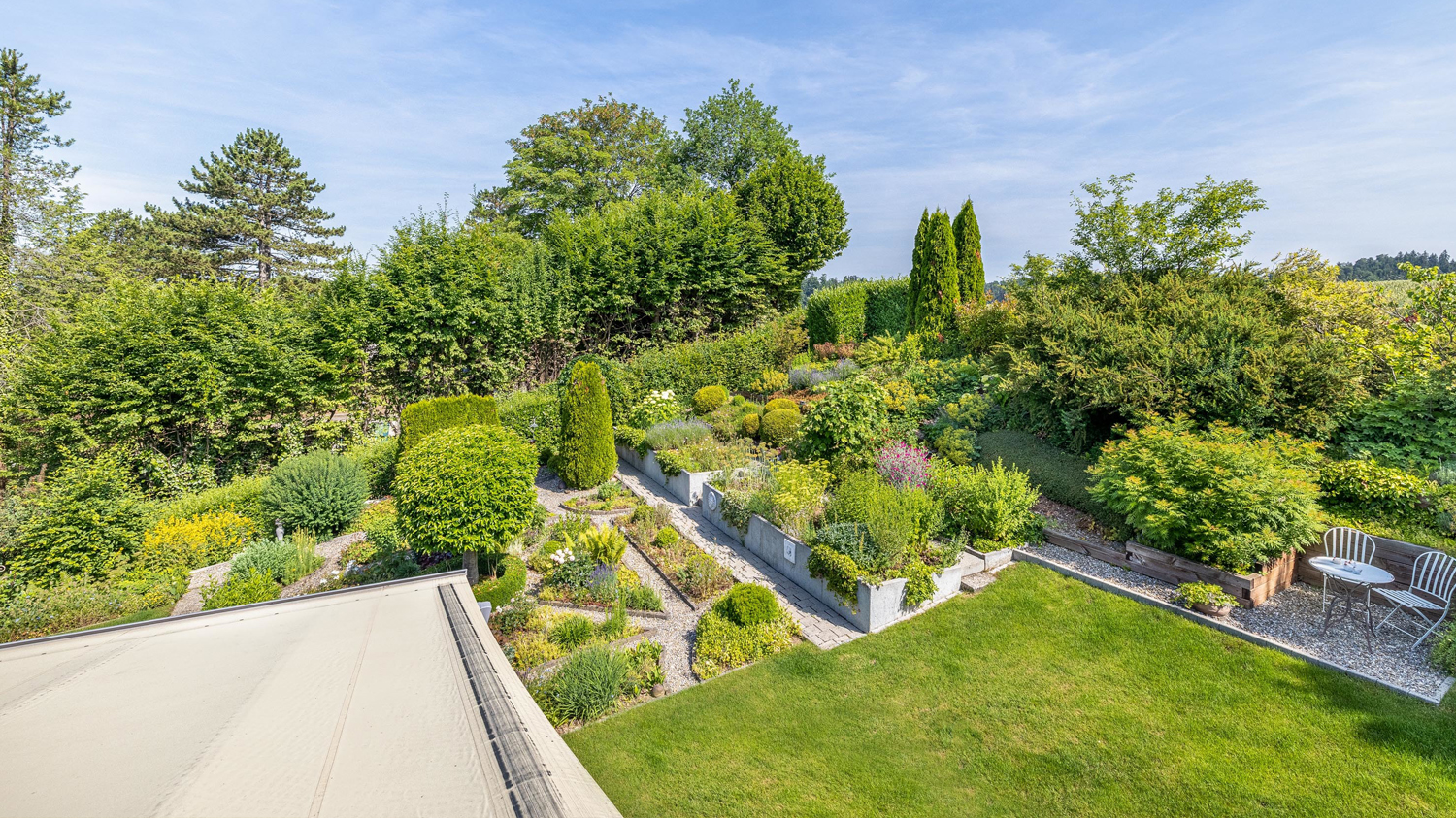 Dieses exklusive 4.5-Zimmer-Doppeleinfamilienhaus überzeugt durch eine harmonische Verbindung von Wohnkomfort, Naturnähe und liebevoll gepflegter Substanz. Mit einer Nettowohnfläche von 142.4 m² präsentiert sich die Liegenschaft als wahres Bijou in einem ruhigen Einfamilienhausquartier. Die leichte Hanglage mit ganztägiger Besonnung eröffnet eine angenehme Weitsicht und unterstreicht die attraktive Wohnlage – nur wenige Schritte von der Natur entfernt. Ein beheizter Wintergarten sowie eine Pergola erweitern den Wohnraum auf elegante Weise und schaffen fliessende Übergänge zwischen Innen- und Aussenbereich. Das rund 130 m² grosse Gartenparadies lädt zum Verweilen ein und bietet ein hohes Mass an Privatsphäre sowie Erholung im eigenen Zuhause. Bei der Konzeption wurde sowohl auf eine warme Wohlfühlatmosphäre als auch auf funktionalen Wohnkomfort im Alltag Wert gelegt. Die Liegenschaft wurde stets sorgfältig unterhalten und präsentiert sich in einem gepflegten Zustand. Dieses Referenzobjekt steht exemplarisch für stilvolles Wohnen in ruhiger und naturnaher Umgebung.