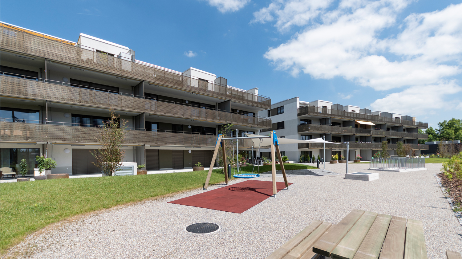 An zentraler Lage, nur wenige Gehminuten vom Bahnhof entfernt, entstanden 2018 in Hinwil zwei moderne Wohnbauten mit 40 attraktiven 2.5- bis 4.5-Zimmer-Wohnungen im Minergie-ECO-Standard. Die nachhaltige Bauweise kombiniert energieeffizientes Wohnen mit hoher Lebensqualität. Die dezente Fassadengestaltung in zwei Hellgrautönen mit Glimmereinstreuung verleiht der Überbauung eine elegante Zurückhaltung, während die gelben Sonnenstoren Wärme und Leichtigkeit ausstrahlen. Grosszügige Fensterfronten und durchdachte Grundrisse sorgen für helle Wohnräume. Dank optimaler Anbindung und naturnaher Umgebung bietet die Überbauung modernen Wohnkomfort in bester Lage.